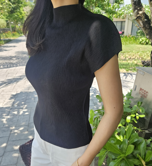 Half-Neck Pleats Top(Black)