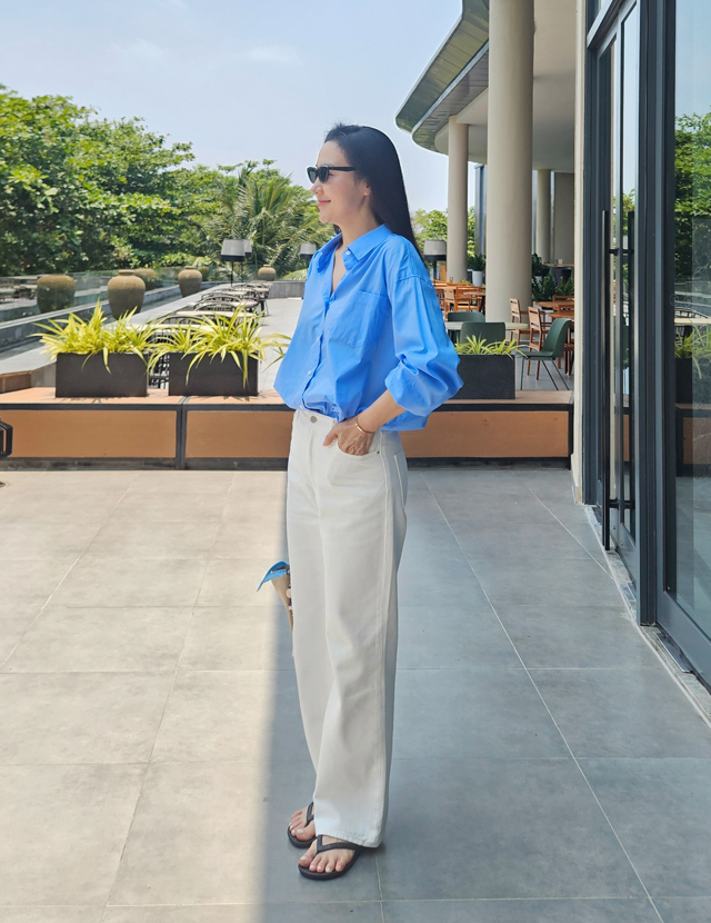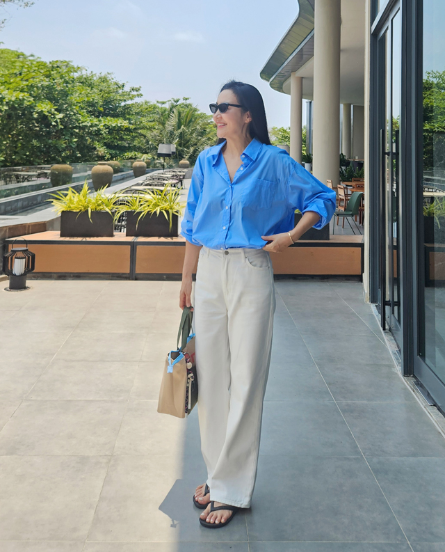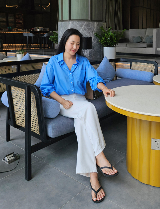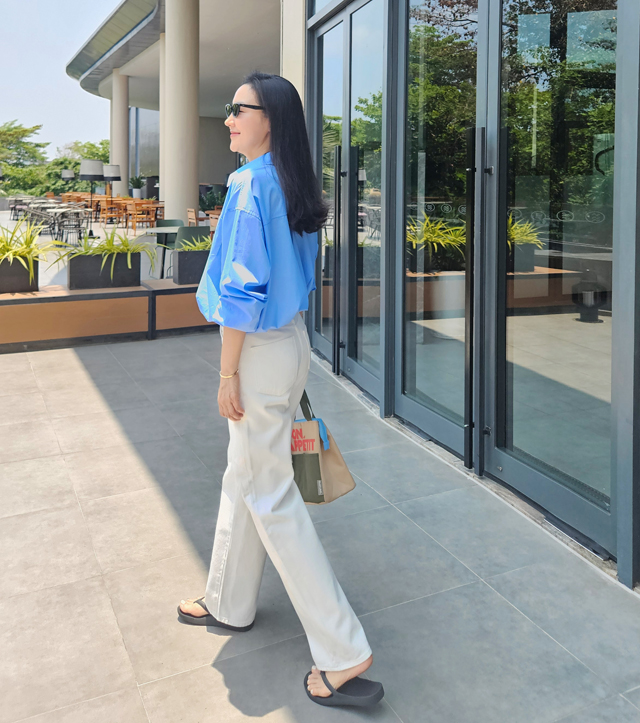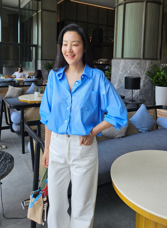 넉넉한 사이즈감에서 오는 편안함과 딱 떨어지는 일자 라인이 주는 지적인 무드.