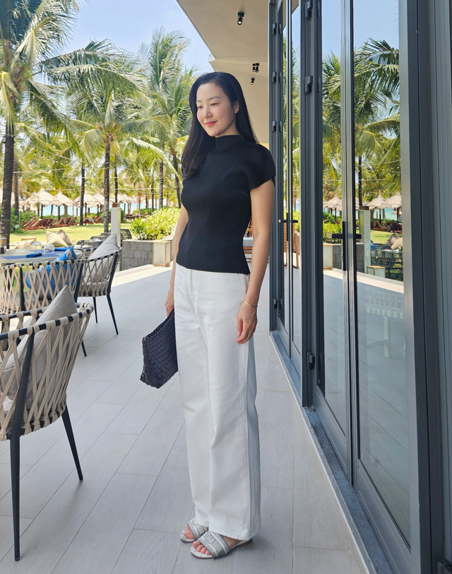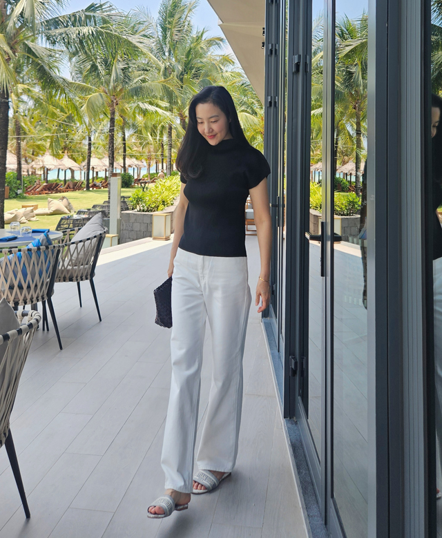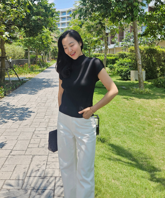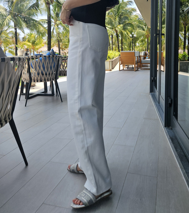 화이트 팬츠는 입고 싶지만 부담스러웠던 분들께 리비에르가 자신 있게 추천합니다.