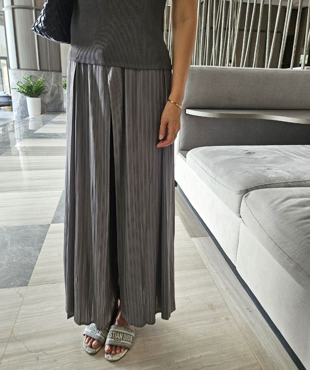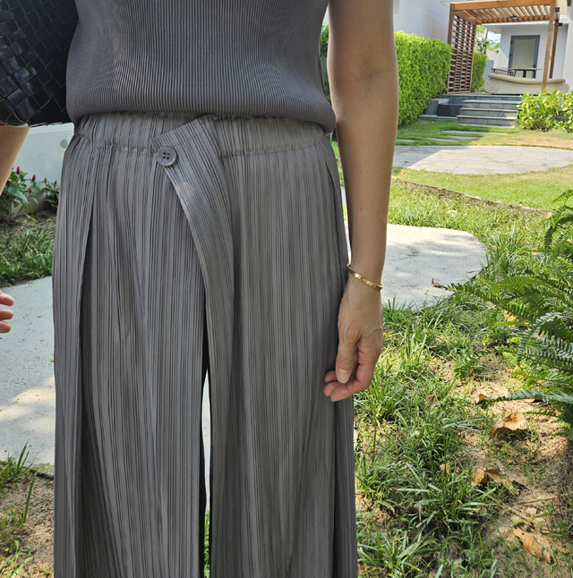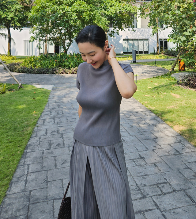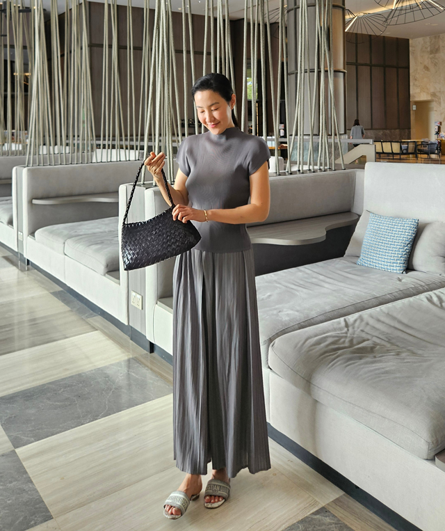 플리츠 소재 특유의 무한한 유연성과 랩 스타일 디자인이 만나,